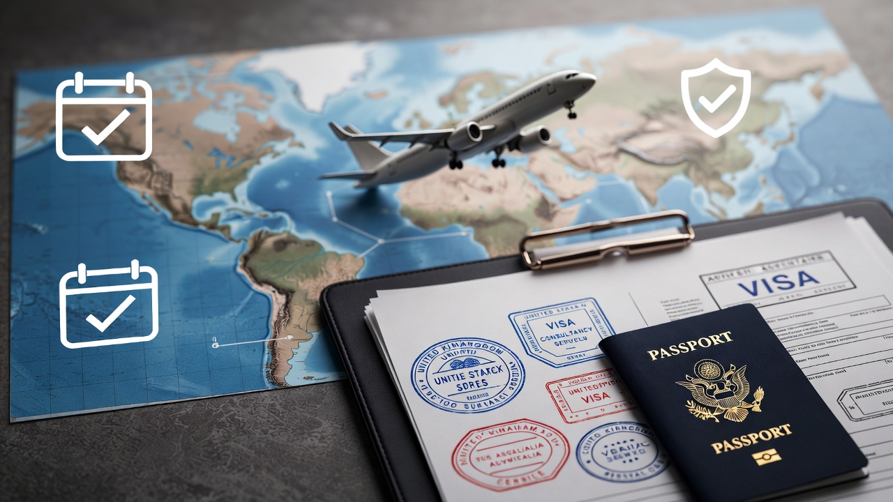 ✈️ Ulaşım & Konaklama: Vizeye uygun uçak bileti ve otel/ev rezervasyonları.
